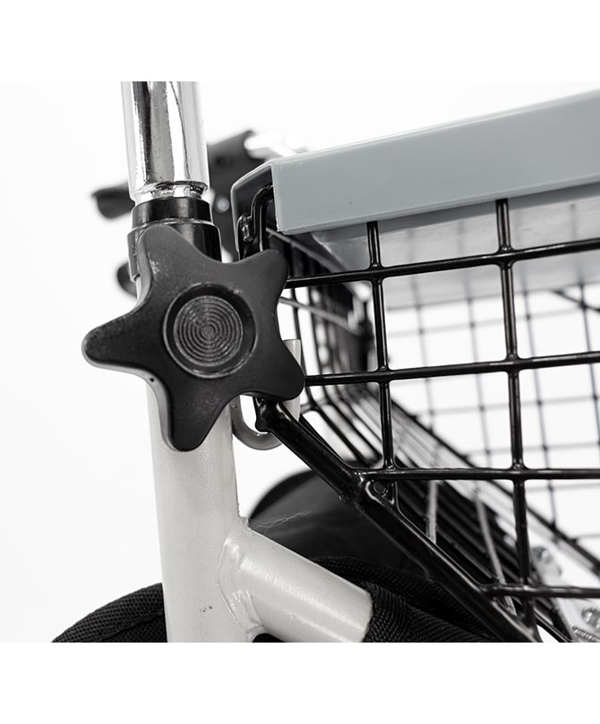 Muito prático, leve e fácil de usar, você ainda poderá contar com um espaçoso porta-objeto além de um cesto metálico frontal e uma abandeja.