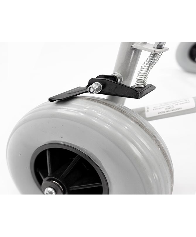 Os freios atuam nas rodas traseiras e podem ser travados através das alavancas de acionamento.