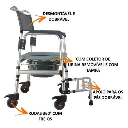 Acompanha um coletor de urina removível com tampa, proporcionando facilidade para o dia a dia do seu usuário.