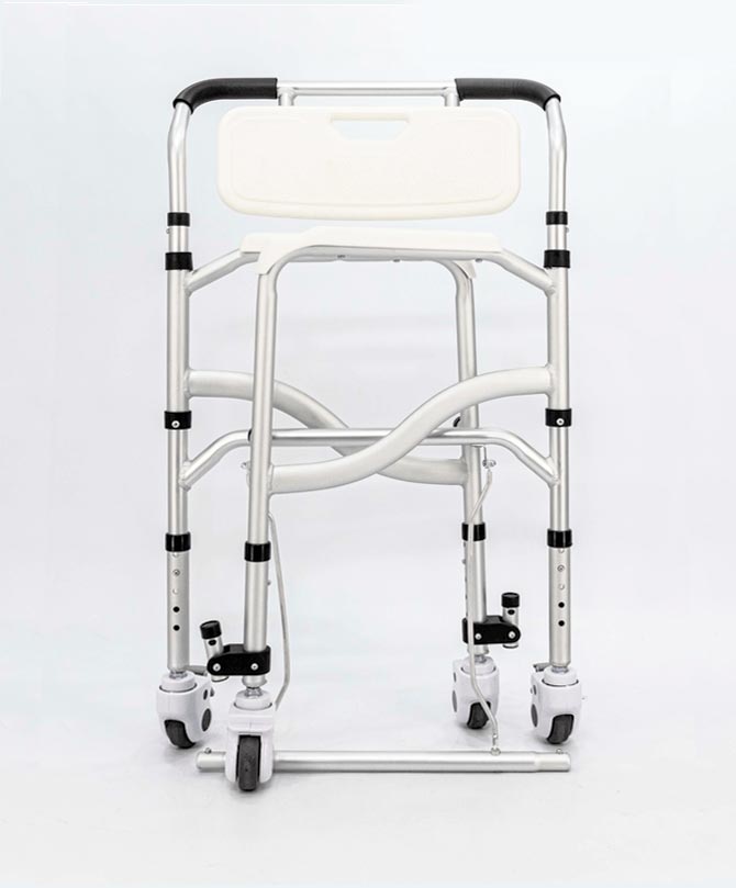 Com estrutura em alumínio resistente e leve, a Verona pesa apenas 9 kg e suporta até 110 kg, sendo de fácil transporte e higienização. Possui rodízios giratórios com freios traseiros, assento almofadado com abertura frontal e um coletor com tampa que pode ser removido por trás, sem a necessidade de movimentar o paciente.