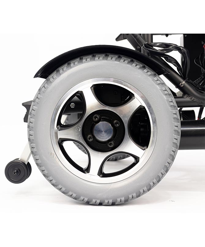 A estrutura em alumínio de alta resistência torna a cadeira durável e leve, enquanto os freios eletromagnéticos duplos asseguram paradas suaves e seguras. Com pneus anti-furo em PU, essa cadeira motorizada elimina preocupações com manutenção, garantindo mais estabilidade e durabilidade em diferentes tipos de terreno.