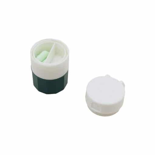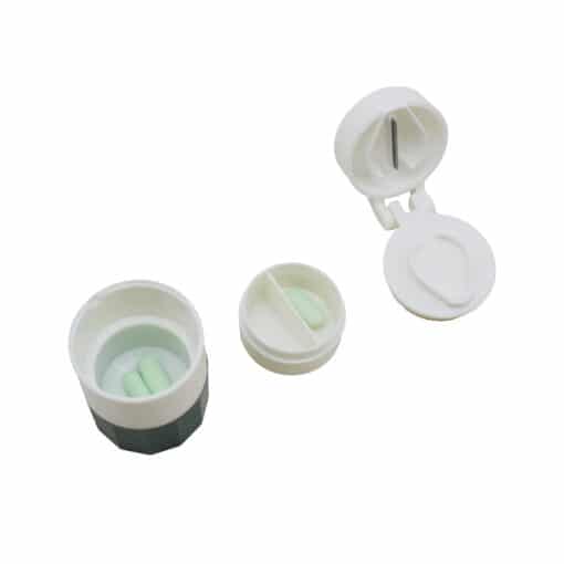- Este produto 2 em 1 tritura, corta e divide comprimidos de qualquer tamanho eficazmente.Com um design portátil, esse acessório é feito de plástico e lâmina de aço inoxidável.