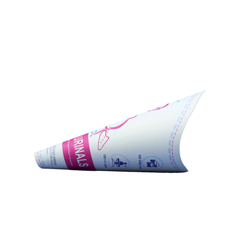 Produzido em papel descartável e a prova d'água, este discreto produto em forma de funil, permite que mulheres urinem em pé em banheiros públicos ou com baixa higienização, evitando o agachamento ou mesmo se sentar em vasos sanitários, proporcionando maior higiene e segurança.