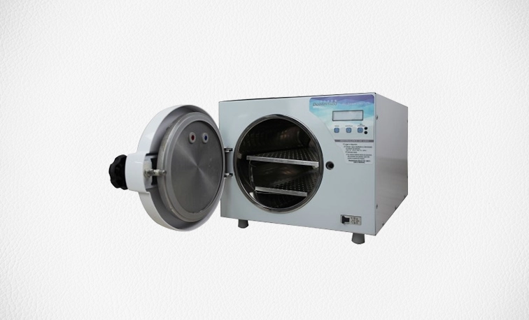 Autoclaves para esterilização por vapor com controle de parâmetros.