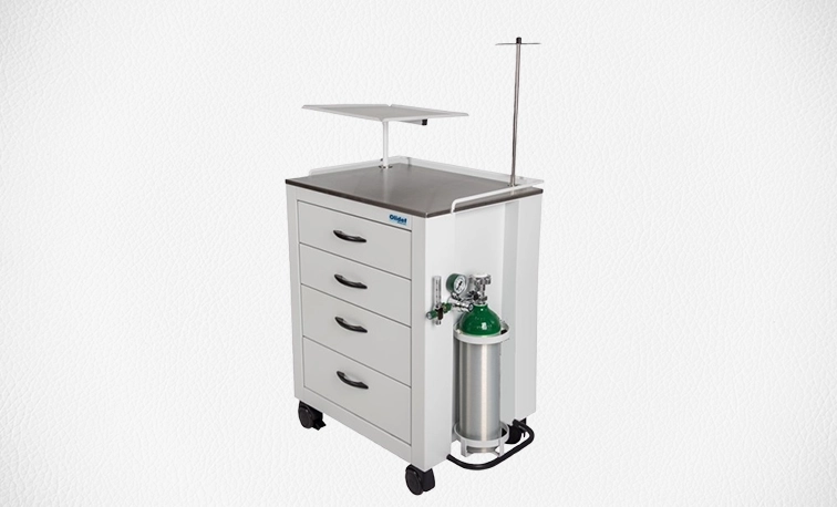 Carros para atendimento rápido com materiais e medicamentos essenciais.
